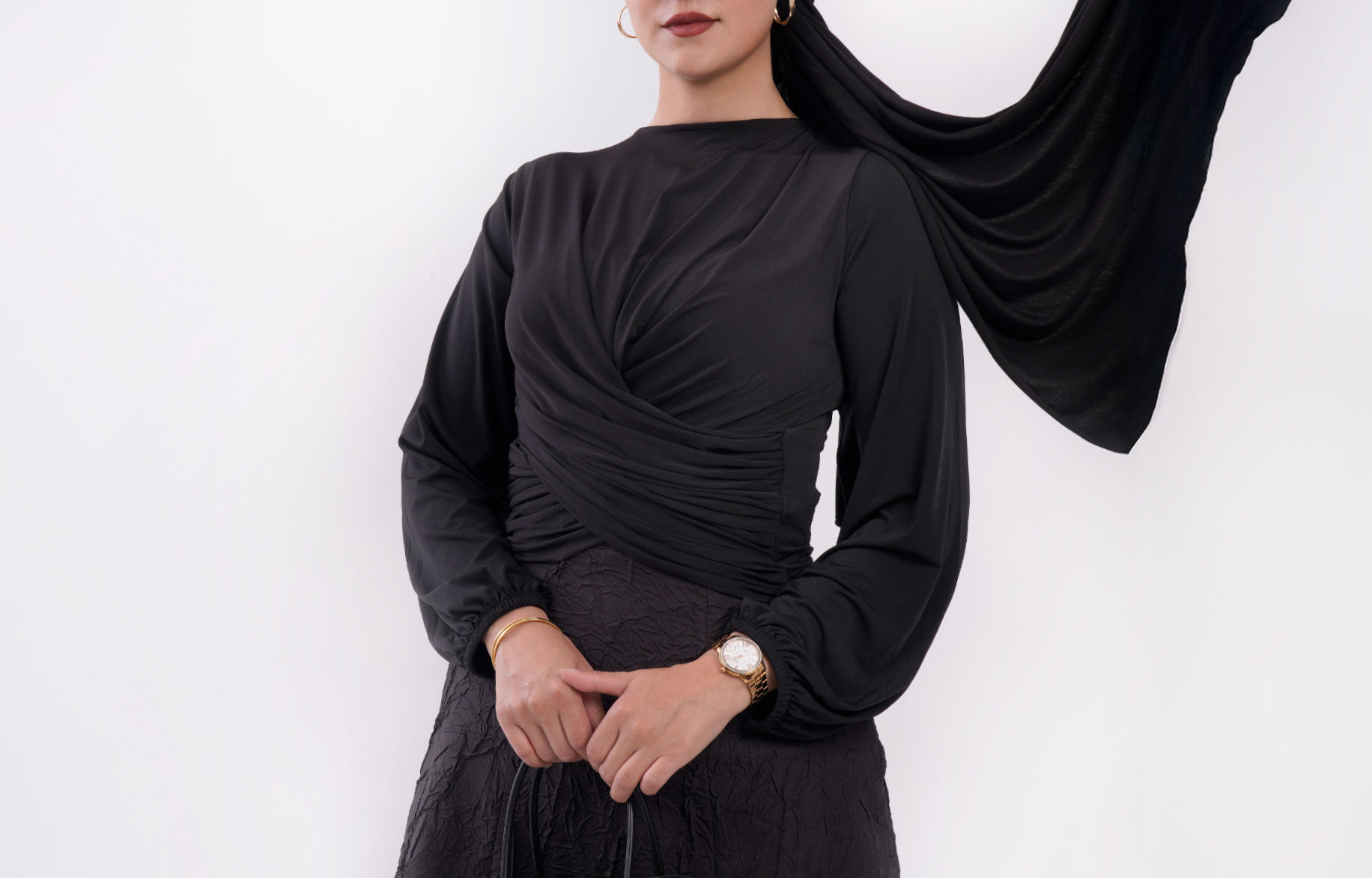 Kusursuz bir şıklık ve zarif bir görünüm sunan Çift Drapeli Bluz, sade tasarımına hareket kazandıran drape detaylarıyla dikkat çeker.